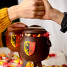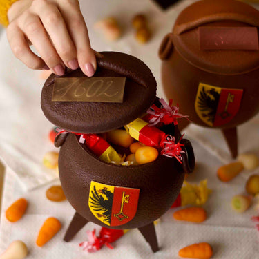 Chaque marmite est décorée à la main et incarne l’héritage d’une tradition locale revisitée avec excellence par nos maîtres chocolatiers.